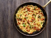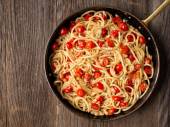 rustykalne pikantne włoski kraba i pomidorów cherry spaghetti makarony