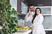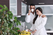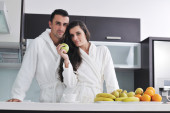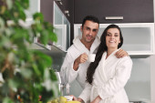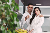 Zdjęcie "młoda para bawić się w nowoczesnej kuchni" może być wykorzystywane do celów osobistych i komercyjnych zgodnie z warunkami zakupionej licencji Royalty-free. Obraz jest dostępny do pobrania w jakości wysokiej rozdzielczości do 5760x3840.