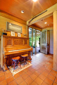 duży pokój dzienny na ranczo konia z kuchni.