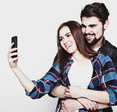 uśmiechający się para z smartphone