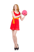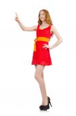 Pretty młoda dziewczyna w czerwonej sukience izolowane na białym