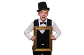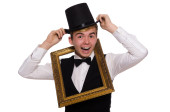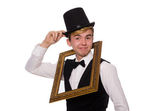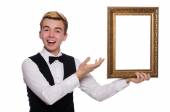 młody człowiek gospodarstwa ramki odizolowany na biały