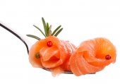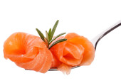 kawałki łososia na widelec