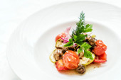 Zdjęcie "carpaccio z smaczny wegetariańska" może być wykorzystywane do celów osobistych i komercyjnych zgodnie z warunkami zakupionej licencji Royalty-free. Obraz jest dostępny do pobrania w jakości wysokiej rozdzielczości do 5760x3840.