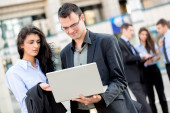 Zdjęcie "Young Business Partners With laptop" może być wykorzystywane do celów osobistych i komercyjnych zgodnie z warunkami zakupionej licencji Royalty-free. Obraz jest dostępny do pobrania w jakości wysokiej rozdzielczości do 5760x3840.