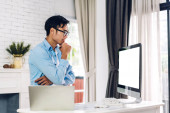 Zdjęcie "Biznesmen pracy na laptopie siedząc na kanapie" może być wykorzystywane do celów osobistych i komercyjnych zgodnie z warunkami zakupionej licencji Royalty-free. Obraz jest dostępny do pobrania w jakości wysokiej rozdzielczości do 5760x3840.