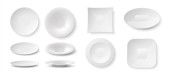 kolekcja naczyń płyta miska na białym tle na białym tle