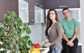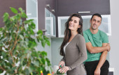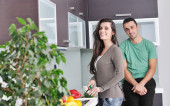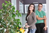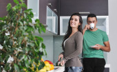 Zdjęcie "młoda para bawić się w nowoczesnej kuchni" może być wykorzystywane do celów osobistych i komercyjnych zgodnie z warunkami zakupionej licencji Royalty-free. Obraz jest dostępny do pobrania w jakości wysokiej rozdzielczości do 5760x3840.