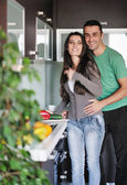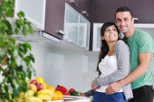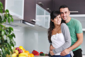 Zdjęcie "młoda para bawić się w nowoczesnej kuchni" może być wykorzystywane do celów osobistych i komercyjnych zgodnie z warunkami zakupionej licencji Royalty-free. Obraz jest dostępny do pobrania w jakości wysokiej rozdzielczości do 5760x3840.