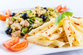 Zdjęcie "Penne z warzyw i mięsa" może być wykorzystywane do celów osobistych i komercyjnych zgodnie z warunkami zakupionej licencji Royalty-free. Obraz jest dostępny do pobrania w jakości wysokiej rozdzielczości do 5760x3840.