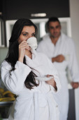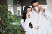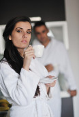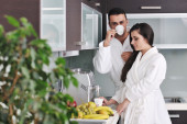 miłość młody para biorąc rano świeże o filiżankę kawy