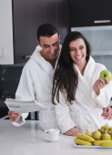 miłość młody para biorąc rano świeże o filiżankę kawy