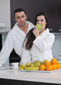 miłość młody para biorąc rano świeże o filiżankę kawy