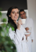 miłość młody para biorąc rano świeże o filiżankę kawy