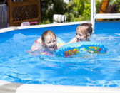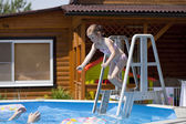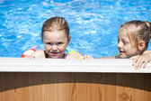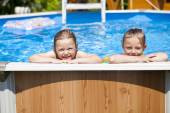 dwie siostry w bikini w pobliżu basenu. gorące lato