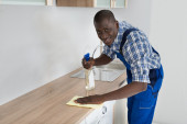Zdjęcie "Woźny czyszczenia blatem kuchennym" może być wykorzystywane do celów osobistych i komercyjnych zgodnie z warunkami zakupionej licencji Royalty-free. Obraz jest dostępny do pobrania w jakości wysokiej rozdzielczości do 5760x3840.