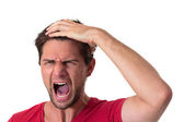młody człowiek Wyświetlono pięści i Szukam bardzo agresywne