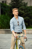 przystojny biznesmen i jego rower