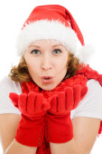 Boże Narodzenie wysyła kobiety pocałunek na białym tle.