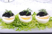 Zdjęcie "jajka z kawiorem czerwonym i czarnym" może być wykorzystywane do celów osobistych i komercyjnych zgodnie z warunkami zakupionej licencji Royalty-free. Obraz jest dostępny do pobrania w jakości wysokiej rozdzielczości do 5760x3840.