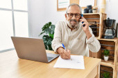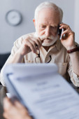 Zdjęcie "Dobrze ubrany senior manager przegląda dokumenty podczas rozmowy telefonicznej we współczesnym biurze." może być wykorzystywane do celów osobistych i komercyjnych zgodnie z warunkami zakupionej licencji Royalty-free. Obraz jest dostępny do pobrania w jakości wysokiej rozdzielczości do 5760x3840.