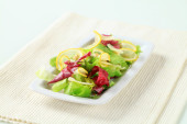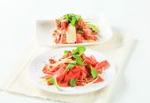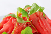 sałata z cienkie plasterki cytryny i surowej wołowiny
