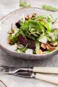 Zdjęcie "Sałatka z buraków z serem i rukolą" może być wykorzystywane do celów osobistych i komercyjnych zgodnie z warunkami zakupionej licencji Royalty-free. Obraz jest dostępny do pobrania w jakości wysokiej rozdzielczości do 5760x3840.