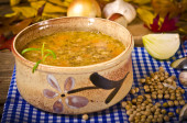 Zupa grochowa (Polski Grochowka) z piersi kurczaka wędzonego mięsa