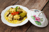 Zdjęcie "Zielone Curry z kurczaka, dania kuchni tajskiej." może być wykorzystywane do celów osobistych i komercyjnych zgodnie z warunkami zakupionej licencji Royalty-free. Obraz jest dostępny do pobrania w jakości wysokiej rozdzielczości do 5760x3840.