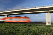 Szybki pociąg przechodzi przez tunel w piękny letni dzień