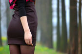 beautiful woman standing near the tree in summer forest