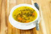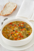 Zdjęcie "Vegetable soup in white bowl with spoon and glass of water" może być wykorzystywane do celów osobistych i komercyjnych zgodnie z warunkami zakupionej licencji Royalty-free. Obraz jest dostępny do pobrania w jakości wysokiej rozdzielczości do 5760x3840.