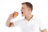 Zdjęcie "Człowiek, który ma ugryźć jabłko." może być wykorzystywane do celów osobistych i komercyjnych zgodnie z warunkami zakupionej licencji Royalty-free. Obraz jest dostępny do pobrania w jakości wysokiej rozdzielczości do 5760x3840.