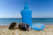 Zdjęcie "olejku do opalania i ciemne okulary na plaży" może być wykorzystywane do celów osobistych i komercyjnych zgodnie z warunkami zakupionej licencji Royalty-free. Obraz jest dostępny do pobrania w jakości wysokiej rozdzielczości do 5760x3840.