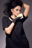 Wesoła brunetka ze świeżymi owocami