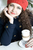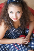 Dziewczyna w niebieską sukienkę gospodarstwa listów tkanina włókienniczych
