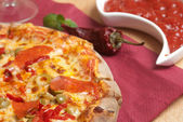 włoski oryginalnego cienka skorupa pizzy pepperoni