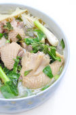 Bun cha ca lub wietnamski makaron ryżowy z grillowanych ryb i zioła na białym tle