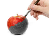 gospodarstwa rękę i pokazuje doskonałe czerwone jabłko