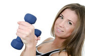 dziewczyna robi ćwiczenia z hantlami na białym tle