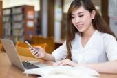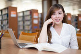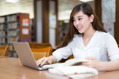 Dojrzale kobiety za pomocą laptopa w bibliotece