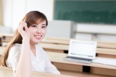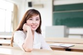 Azjatki, piękna kobieta, pisanie na tablicy
