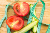 Ogórek i pomidor z pomiarem