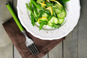Zdjęcie "Green salad n plate on wooden background" może być wykorzystywane do celów osobistych i komercyjnych zgodnie z warunkami zakupionej licencji Royalty-free. Obraz jest dostępny do pobrania w jakości wysokiej rozdzielczości do 5760x3840.