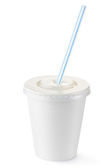 szklanki jednorazowe średniej wielkości na napoje ze słomką