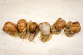 Zdjęcie "Grupa 6 ślimaków na szarym tle drewniane" może być wykorzystywane do celów osobistych i komercyjnych zgodnie z warunkami zakupionej licencji Royalty-free. Obraz jest dostępny do pobrania w jakości wysokiej rozdzielczości do 5760x3840.