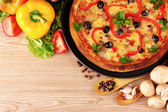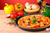 smaczne pizze z warzyw i bazylia na stole z bliska