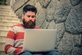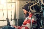 Zdjęcie "Trendy hipster young man with laptop" może być wykorzystywane do celów osobistych i komercyjnych zgodnie z warunkami zakupionej licencji Royalty-free. Obraz jest dostępny do pobrania w jakości wysokiej rozdzielczości do 5760x3840.