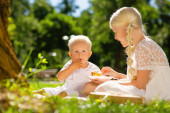 Cute little children sitting on the blanket