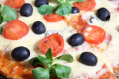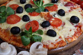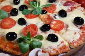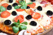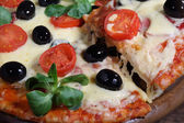 Kawałek pizzy i pizza z salami, szynka i pomidory na